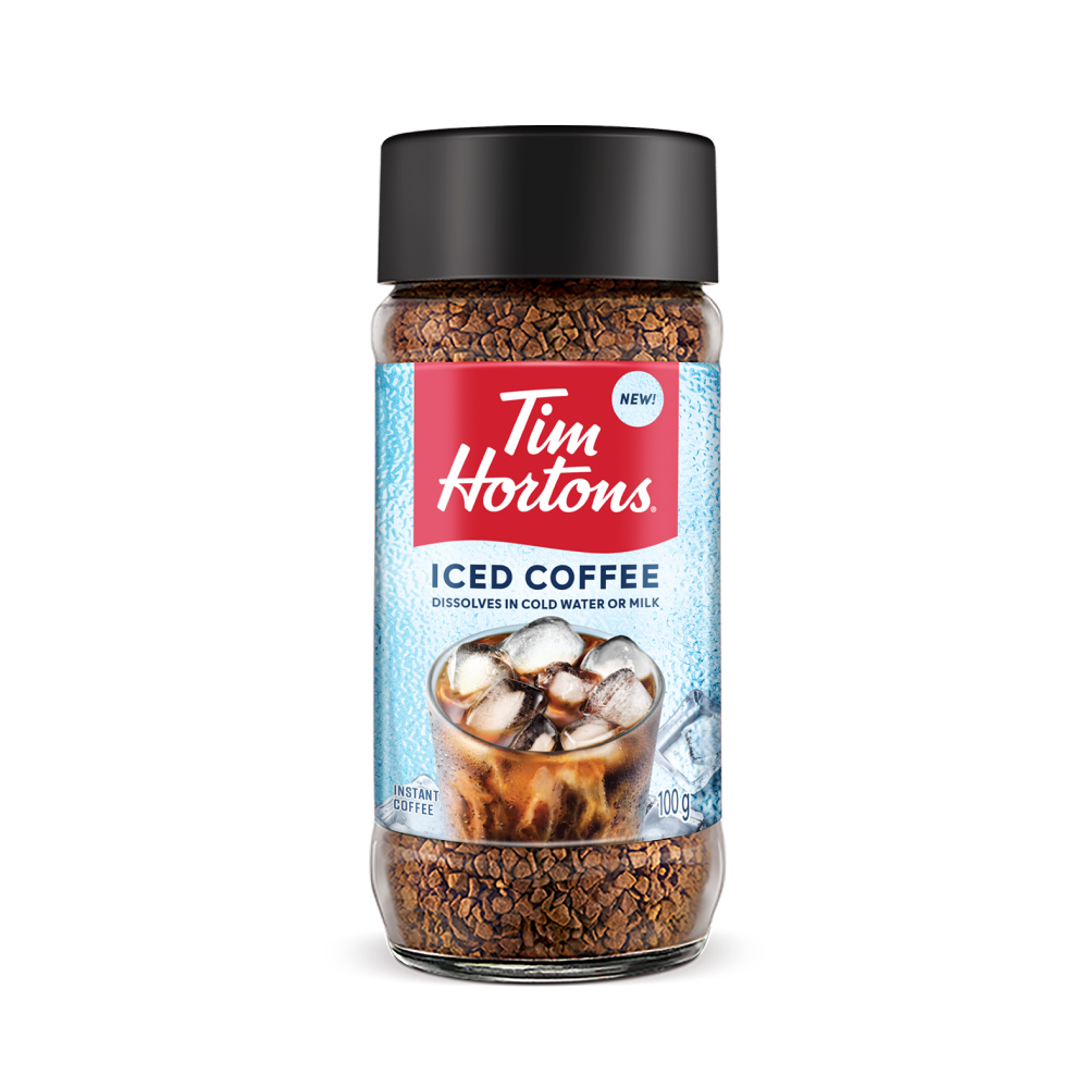 Iced Coffee: Beat the heat with the rich. smooth taste or Tim Horton’s Instant Iced Coffee. Made from 100% Arabica beans. this convenient 100g jar lets you experience the iconic Tims iced coffee experience anytime- no brewing required. Simply mix 1 teaspoon of instant iced coffee for every 120 ml with cold water or milk. stir. and enjoy.