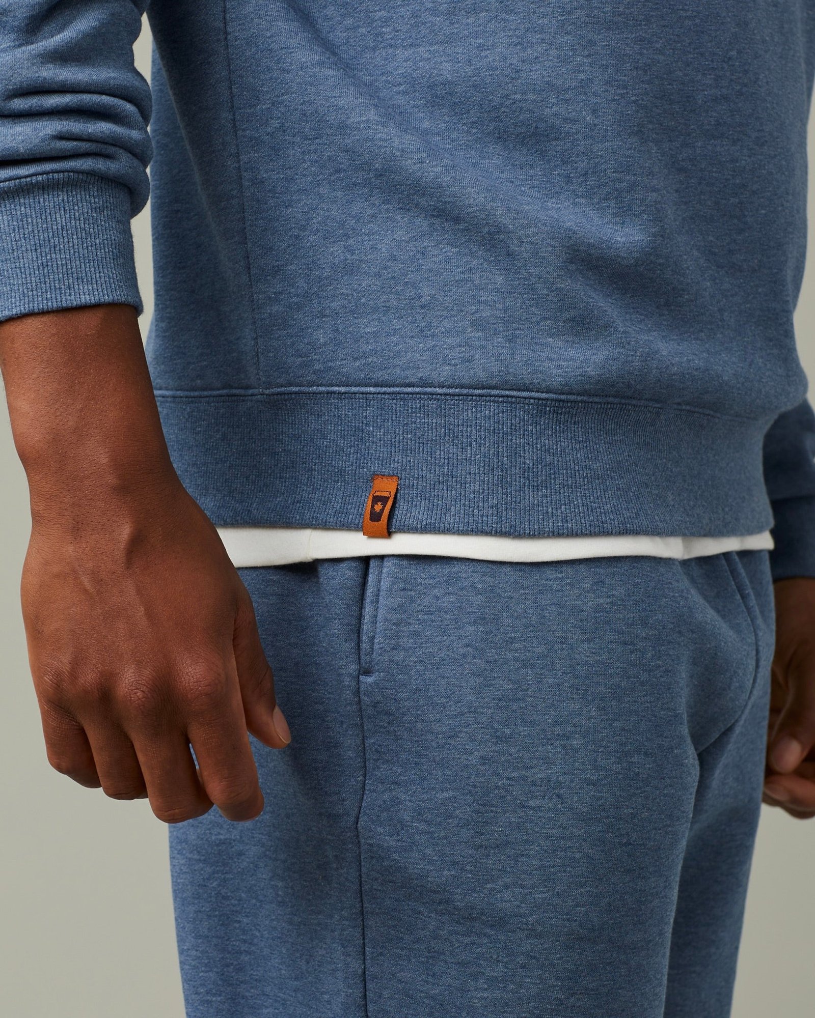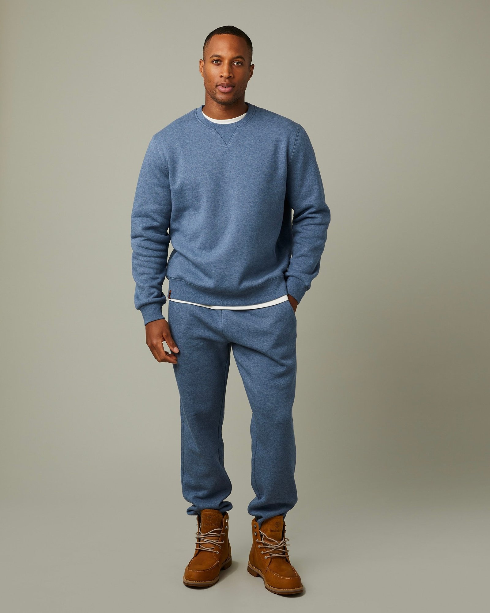 Tims classic sweatpants that you know and love. now in denim heather. Wear these solo or pair with the matching crewneck for the full Canadian tuxedo energy – either way. you’re clocked in.